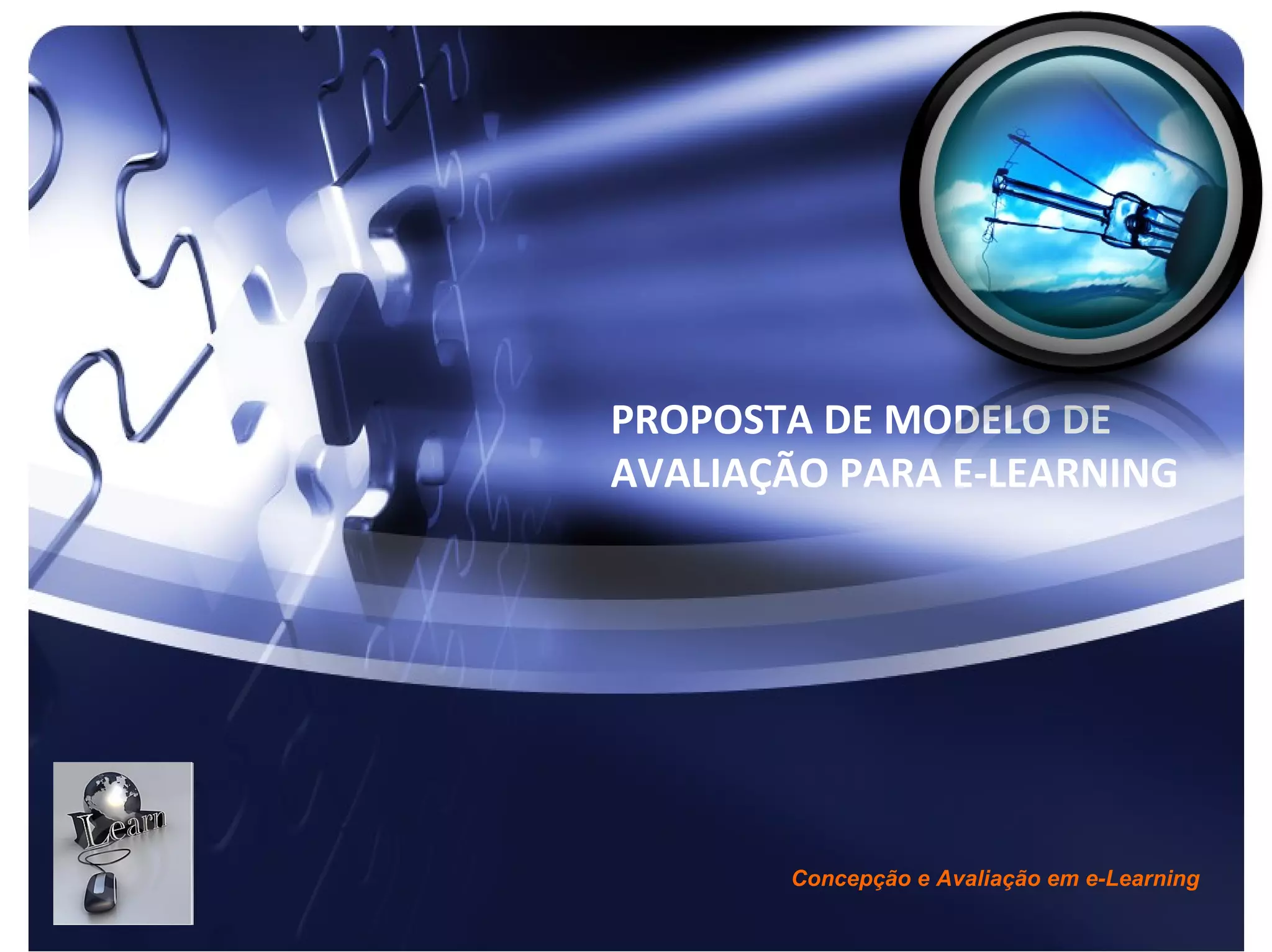 Este documento propõe um modelo de avaliação para cursos de e-learning com quatro níveis: 1) satisfação dos alunos, 2) aprendizagem, 3) comportamento, e 4) impacto. O modelo sugere avaliar continuamente a plataforma, conteúdo, metodologias, e resultados do curso usando o ciclo PDCA de planeamento, execução, verificação e ação.