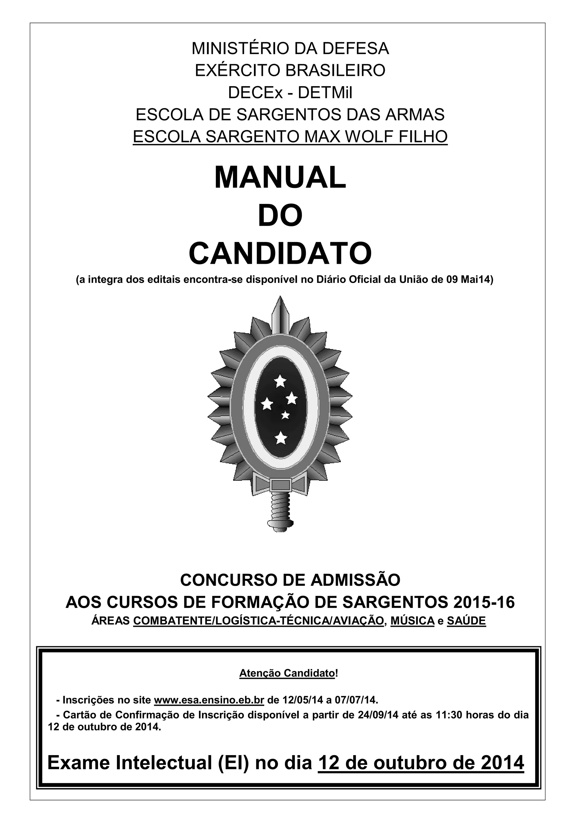 1. O documento fornece instruções e orientações sobre o concurso de admissão aos Cursos de Formação de Sargentos do Exército Brasileiro para 2015-2016.