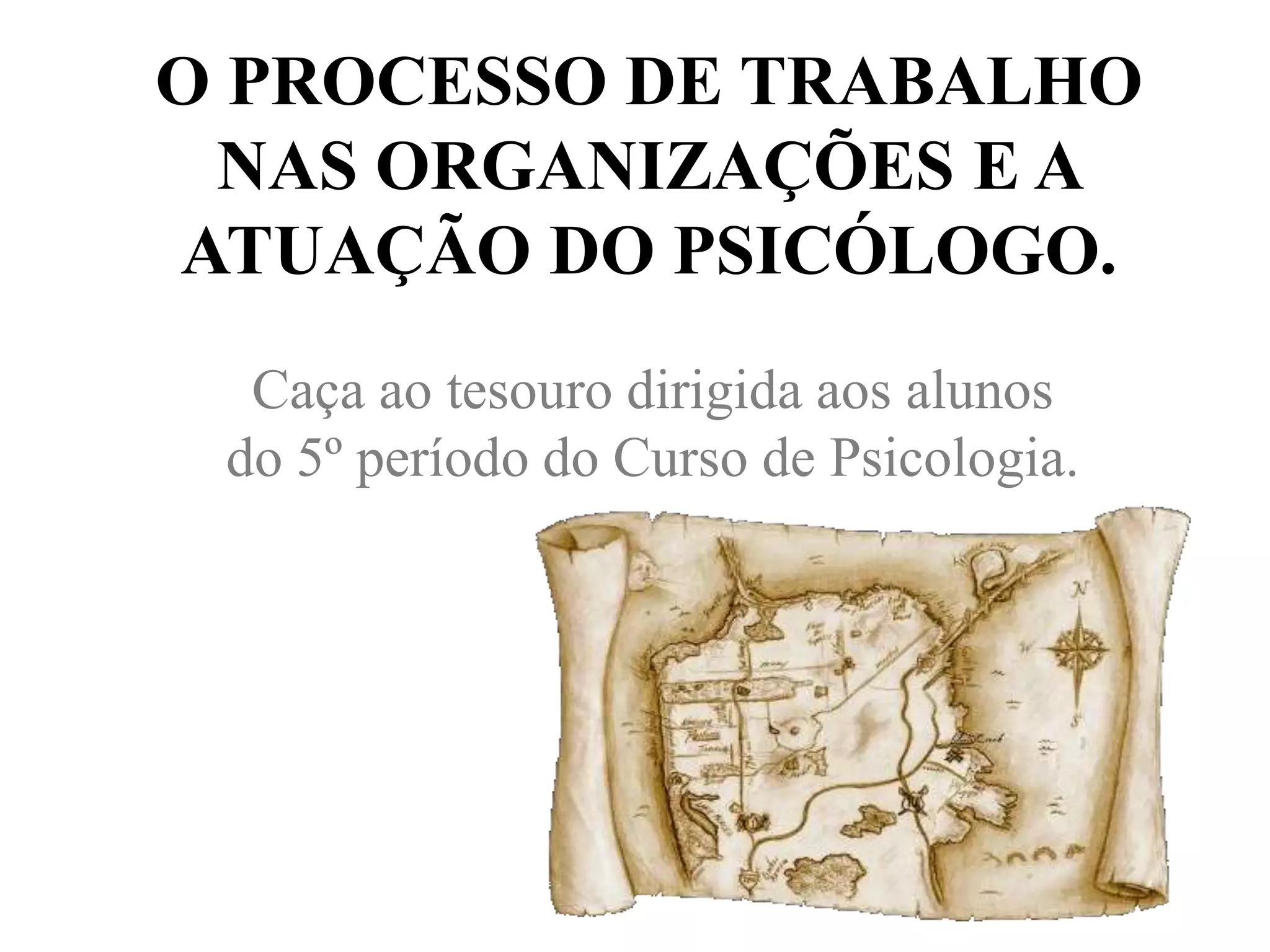 O documento discute a evolução histórica dos modelos de gestão e administração no ambiente organizacional e a crescente importância do psicólogo nesse contexto. Apresenta uma caça ao tesouro com perguntas sobre os principais modelos de gestão de pessoas e como o papel do psicólogo vem ganhando relevância ao lidar com o comportamento humano no ambiente de trabalho.