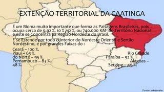 1) A Caatinga é um bioma que ocupa cerca de 10% do território brasileiro, concentrado principalmente no Nordeste.