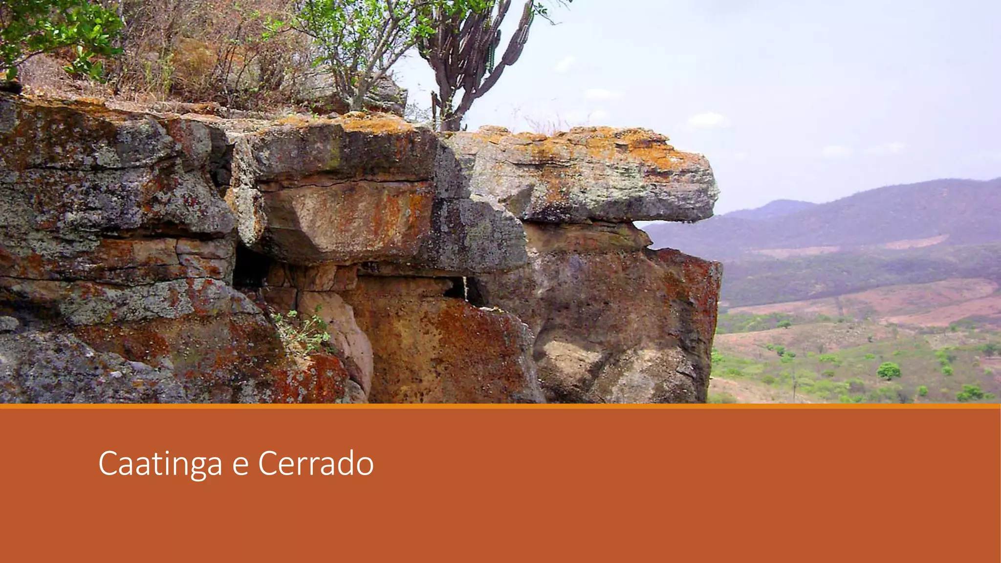A caatinga é o único sistema ambiental exclusivamente brasileiro, caracterizado por clima semiárido e vegetação xerófila adaptada à escassez hídrica. Já o Cerrado possui a segunda maior cobertura vegetal do Brasil, com diversos subsistemas e espécies de plantas e animais, tendo clima com estações chuvosa e seca. Ambos biomas possuem grande importância ecológica, porém vêm sofrendo com a transformação de suas áreas naturais.