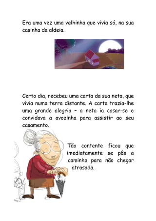 Uma velhinha recebeu um convite para o casamento da neta e embarcou numa viagem, mas foi ameaçada por três feras - um lobo, um urso e um leão - que disseram que a comeriam no caminho de volta. A neta escondeu a avó dentro de uma cabacinha para enganar as feras e salvá-la.