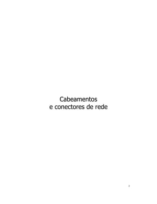 O documento discute os tipos de cabeamento para redes, incluindo cabo coaxial, par trançado e fibra óptica. Também descreve a evolução das redes de dados, desde o uso inicial de cabo coaxial até o surgimento do cabo UTP e fibra óptica, que trouxeram maiores vantagens como velocidade, segurança e flexibilidade.