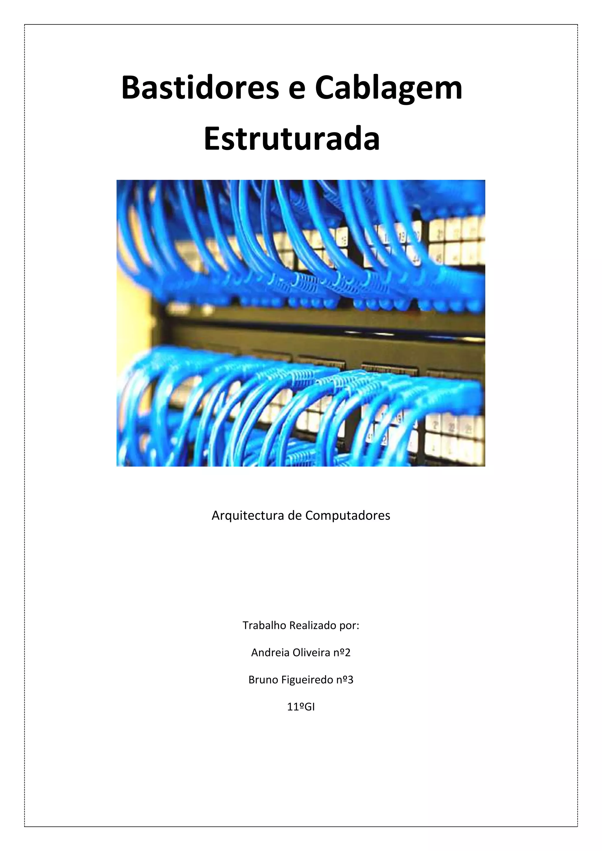 1) O documento descreve os componentes e organização de um armário de rede, incluindo bastidores, acessórios, equipamentos e cablagem estruturada.