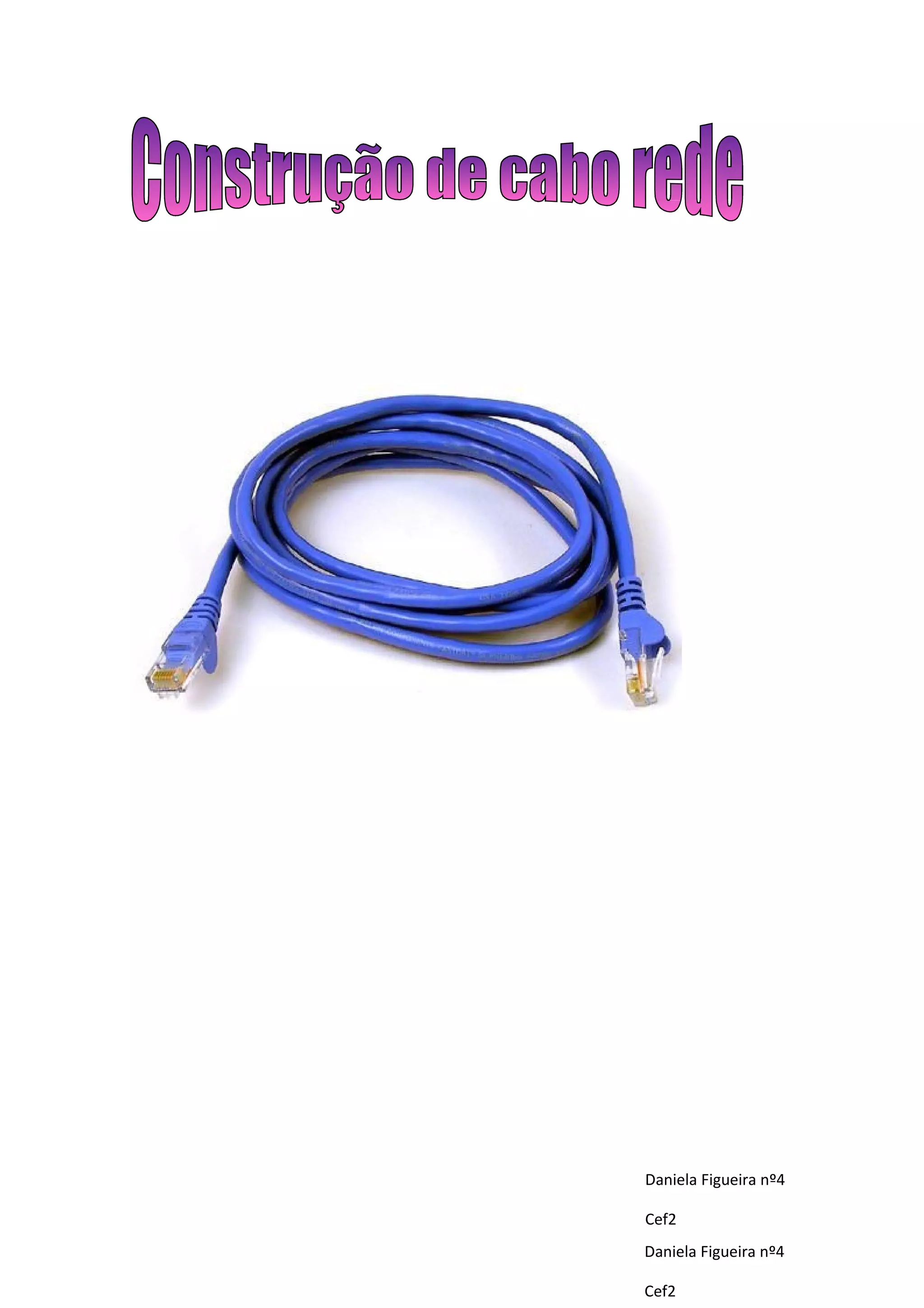 Este documento fornece instruções passo-a-passo para construir cabos de rede, incluindo como cortar e isolar o cabo, separar os fios por cores, inseri-los na ficha RJ45 de acordo com o padrão, e cravar a ficha no cabo. Também lista os materiais necessários e descreve os tipos básicos de cabos.