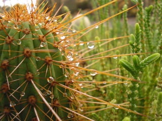 Os cactos são plantas espinhentas que armazenam água e sobrevivem em climas quentes e áridos. Possuem folhas modificadas em espinhos e caules grossos para armazenar água e realizar a respiração. Florescem produzindo frutos comestíveis, e são encontrados nas Américas e cultivados como ornamentação.