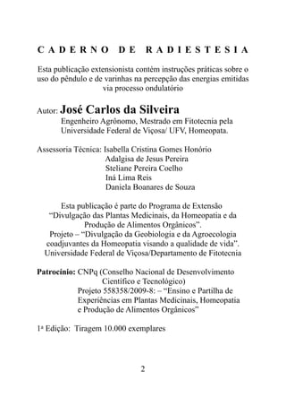 1. O documento discute a radiestesia, uma técnica tradicional de percepção de energias e ondas de baixa frequência usando instrumentos como pêndulo e varinhas.