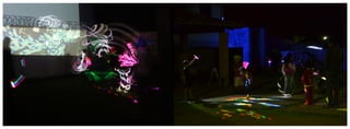 O documento descreve a cidade de Catas Altas no Brasil e sua Praça Socoimex. A intervenção artística Conecta usou luzes e projeções de vídeo para integrar as diferentes áreas da praça e torná-la um espaço mais coeso e agradável para a comunidade.
