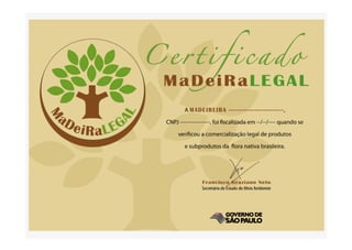 O CADMADEIRA é um cadastro da Secretaria de Meio Ambiente de São Paulo para comerciantes de produtos florestais nativos. Foi instituído em 2008 para regularizar as compras do governo estadual e orientar sobre origem sustentável desses produtos, dando transparência às empresas que os comercializam de forma responsável.