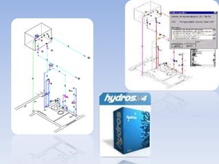 O documento descreve softwares científicos e de engenharia como Eberick, Lumine e Hydros da empresa Alto QI. Estes softwares auxiliam projetos estruturais, elétricos, hidráulicos e sanitários de acordo com normas e padrões brasileiros. Um vídeo explicativo sobre o software Hydros é fornecido.