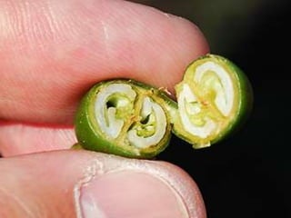 da semente onde põe ovos que liberam lagartinhas. Há