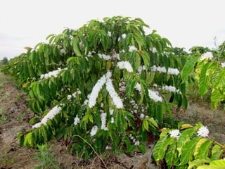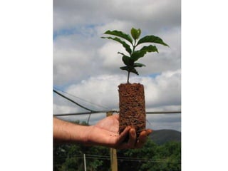 O documento descreve a história e a cadeia produtiva do café no Brasil. Ele discute a origem e morfologia das espécies de café mais cultivadas, o cultivo do café conilon, pragas e doenças que afetam o café.