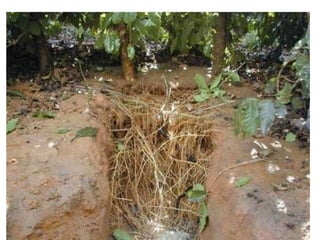A raizprincipal do cafeeiro é pivotante e amplamente ramificada na