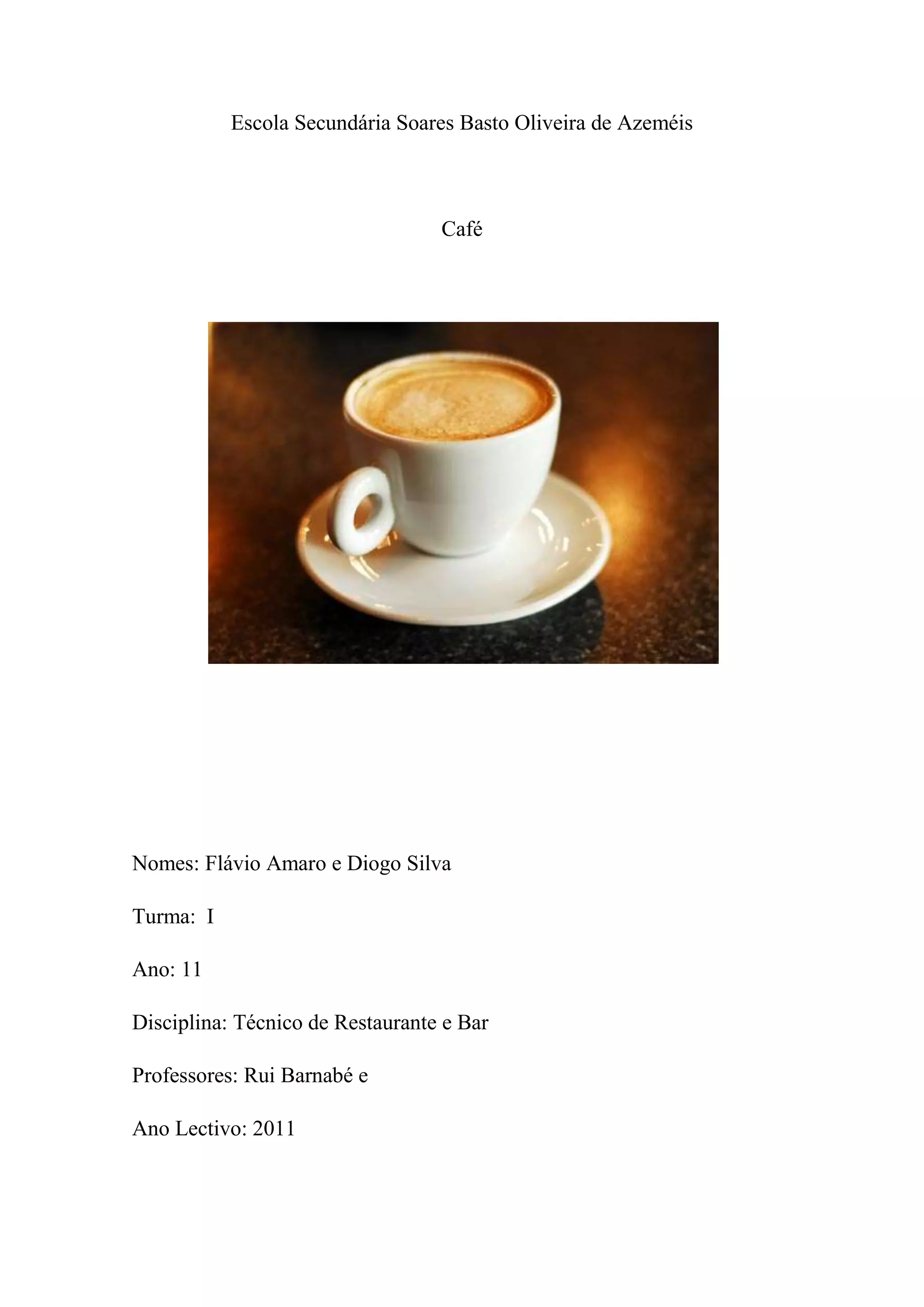 O documento resume diferentes tipos de café, incluindo café solúvel, café expresso e cafés como estabelecimentos. Detalha como cada um é preparado e suas características principais, como a rapidez de preparo do café solúvel ou a alta pressão usada para o café expresso. Também discute o papel social dos cafés.