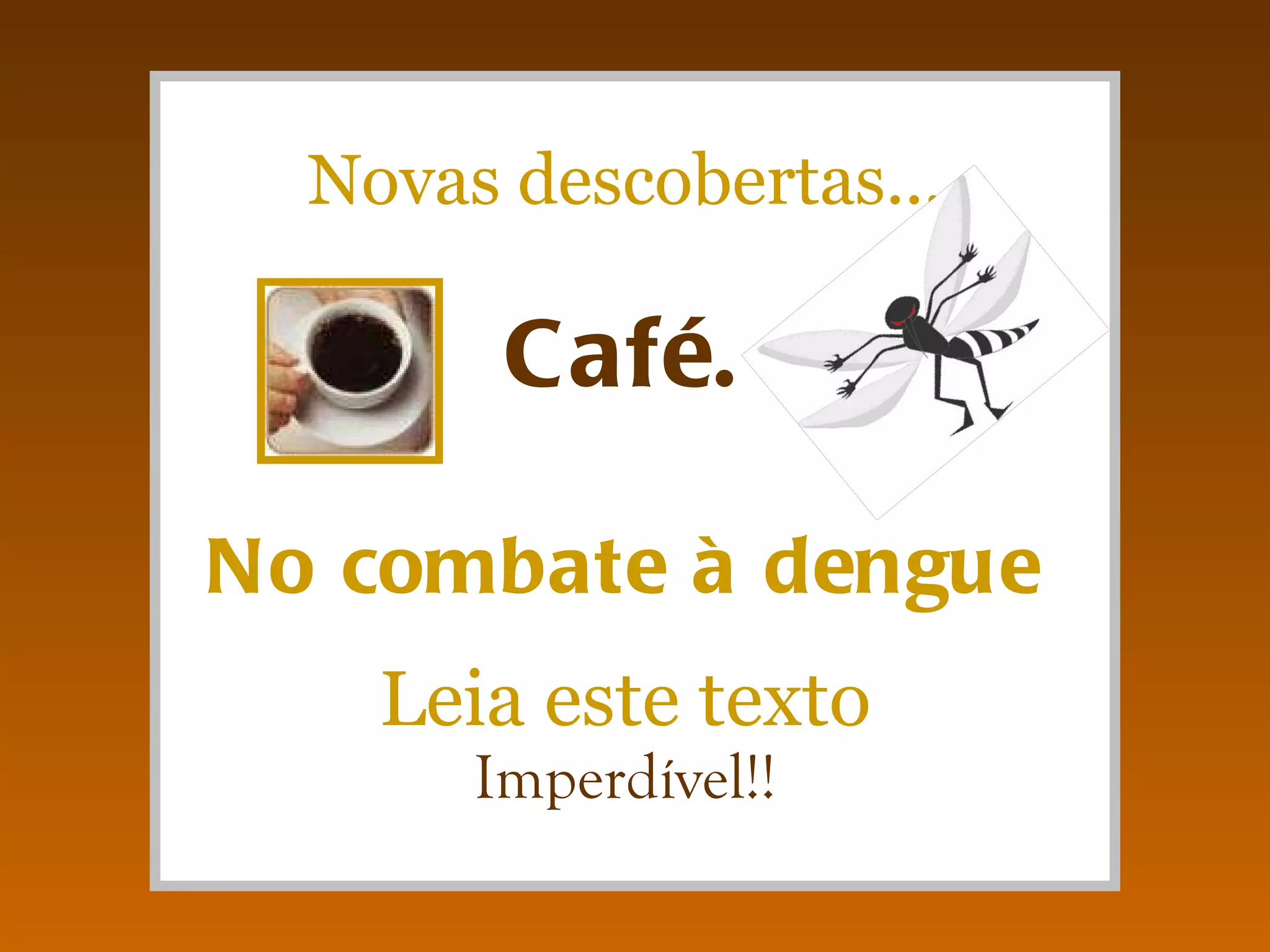 A bióloga Alessandra Laranja descobriu que a borra de café pode bloquear o desenvolvimento do mosquito Aedes aegypti, transmissor da dengue, através de um processo simples de aplicação em locais com água parada. A cafeína presente na borra altera enzimas essenciais e pode ser usada como uma solução ecológica e de baixo custo, especialmente em comunidades de baixa renda. Especialistas em saúde pública apoiam essa descoberta como uma alternativa ao uso de pesticidas tóxicos.