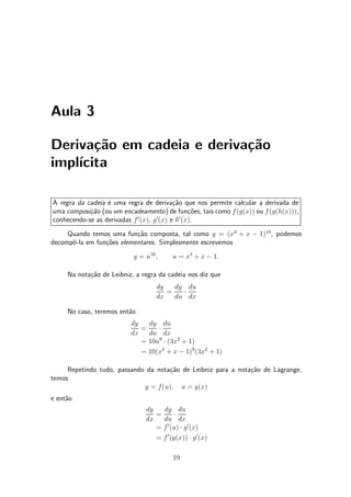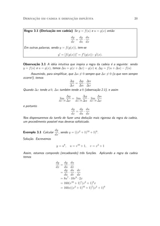 1) O documento descreve a regra da cadeia para derivadas de funções compostas e apresenta exemplos de sua aplicação.