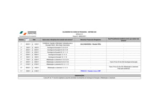 1) O documento apresenta o calendário de um curso de pedagogia na modalidade EAD, com informações sobre disciplinas, datas de provas e procedimentos acadêmicos.