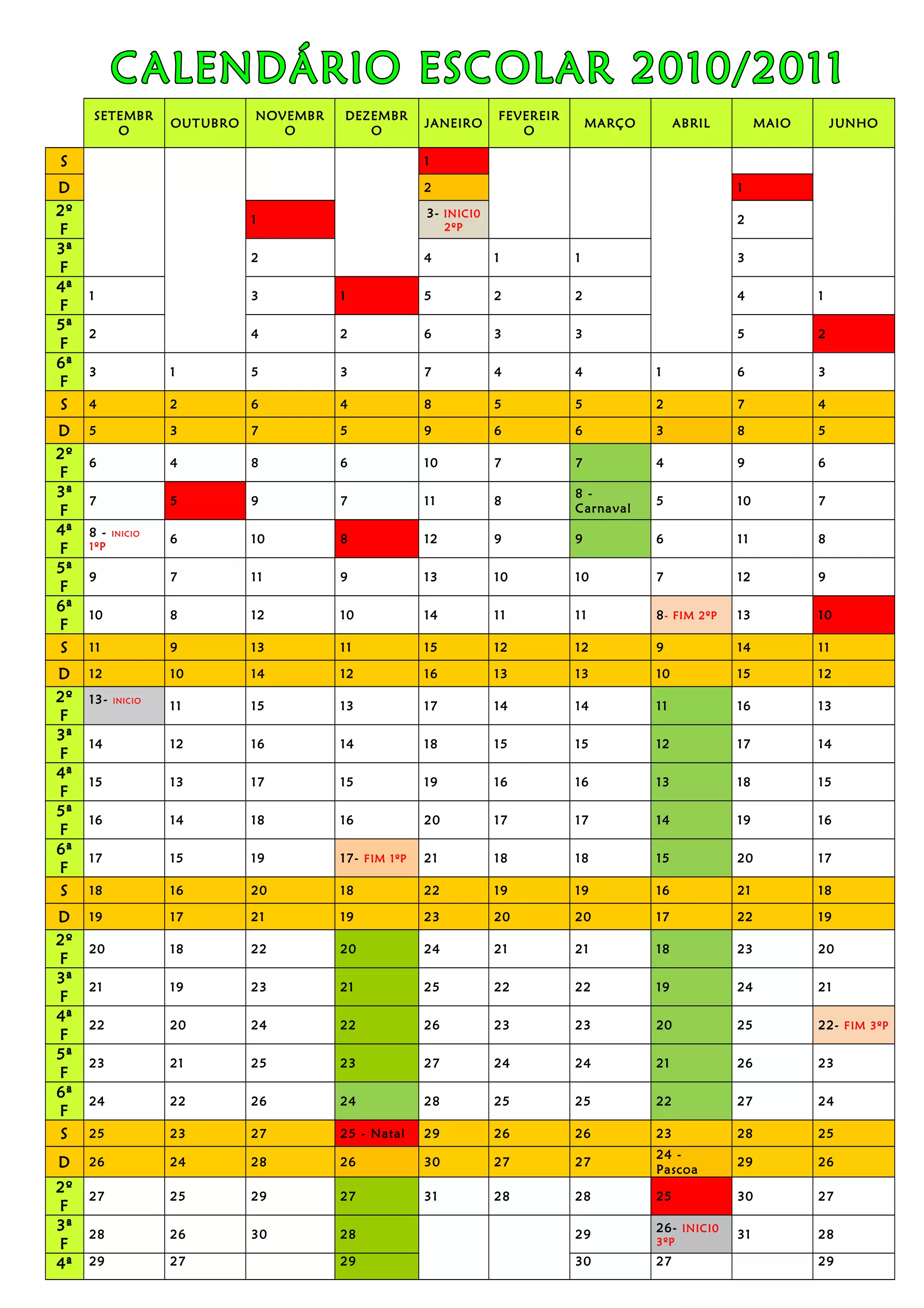 3º Período: 8 semanas + 3 dias (1º, …, 7º, 8º e 10º ano) e 7 semanas (9º,11º e 12º