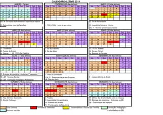 3) Além dos feriados nacionais, a escola possui datas comemorativas e eventos como assembléias, formativas de professores e entrega de relatórios.