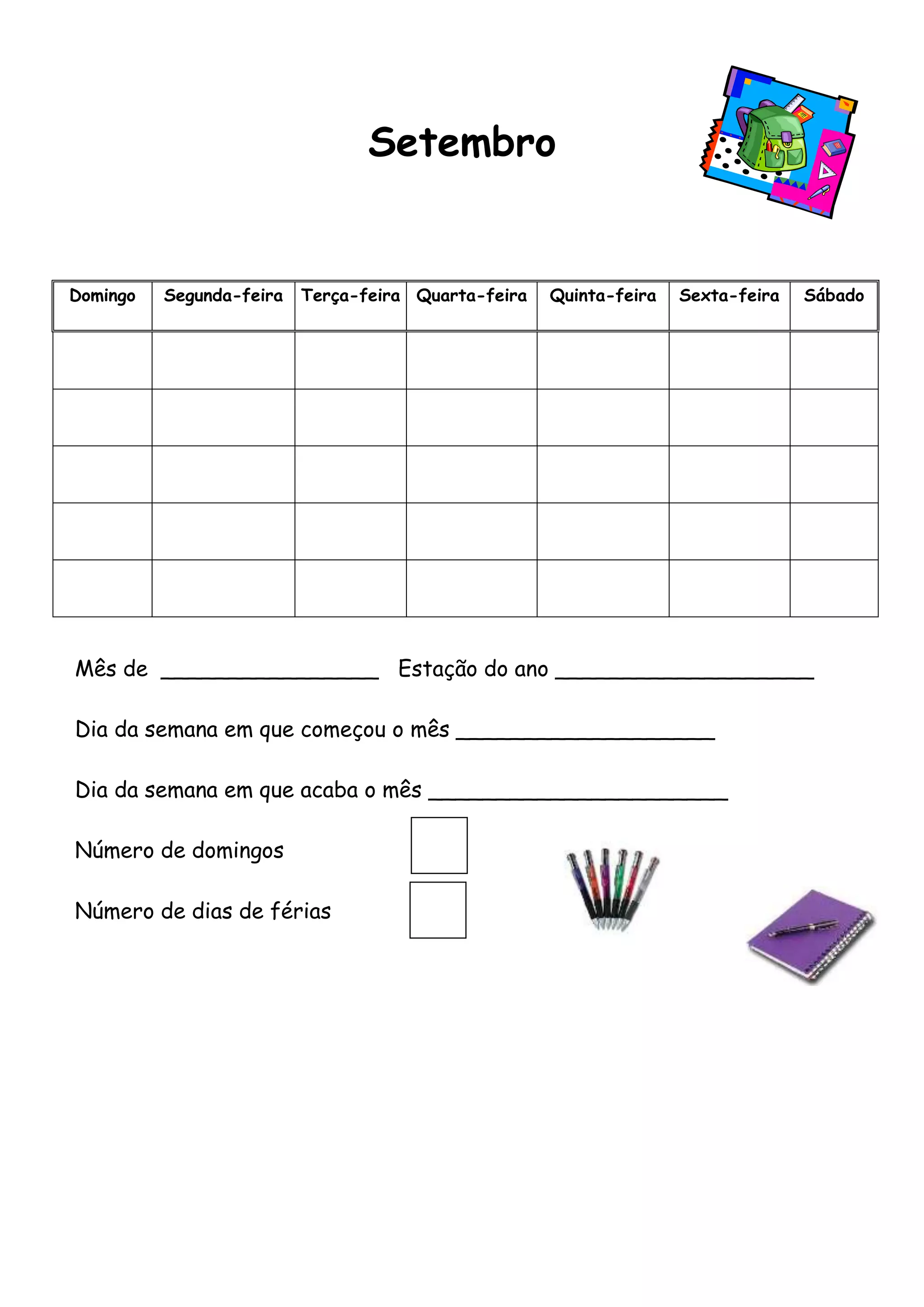 Mês de ________________ Estação do ano ___________________