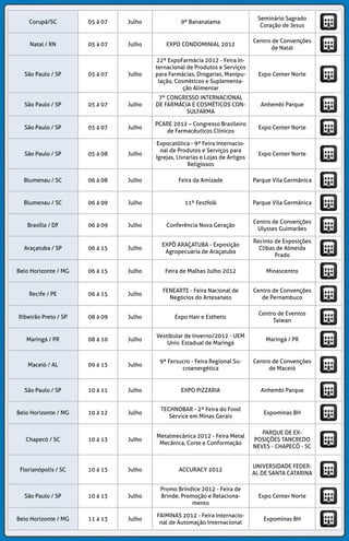 Períodos com diferentes níveis de demanda para reservas hoteleiras. Calendário com diversos eventos em várias cidades entre 1 e 30 de abril, incluindo feiras, conferências, rodeios e encenações religiosas. Recomendação para antecipar reservas com antecedência.