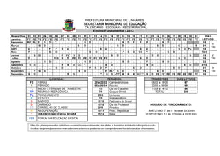 1) O documento apresenta o calendário escolar da rede municipal de ensino fundamental de Linhares para o ano de 2012, com os períodos letivos, feriados e recessos distribuídos pelos meses do ano.