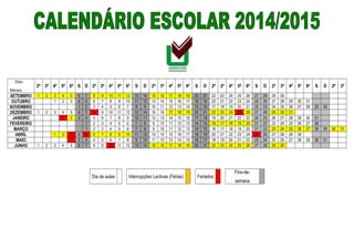 Este documento apresenta um calendário escolar com os meses de setembro a junho, indicando os dias letivos, interrupções letivas como férias e feriados.