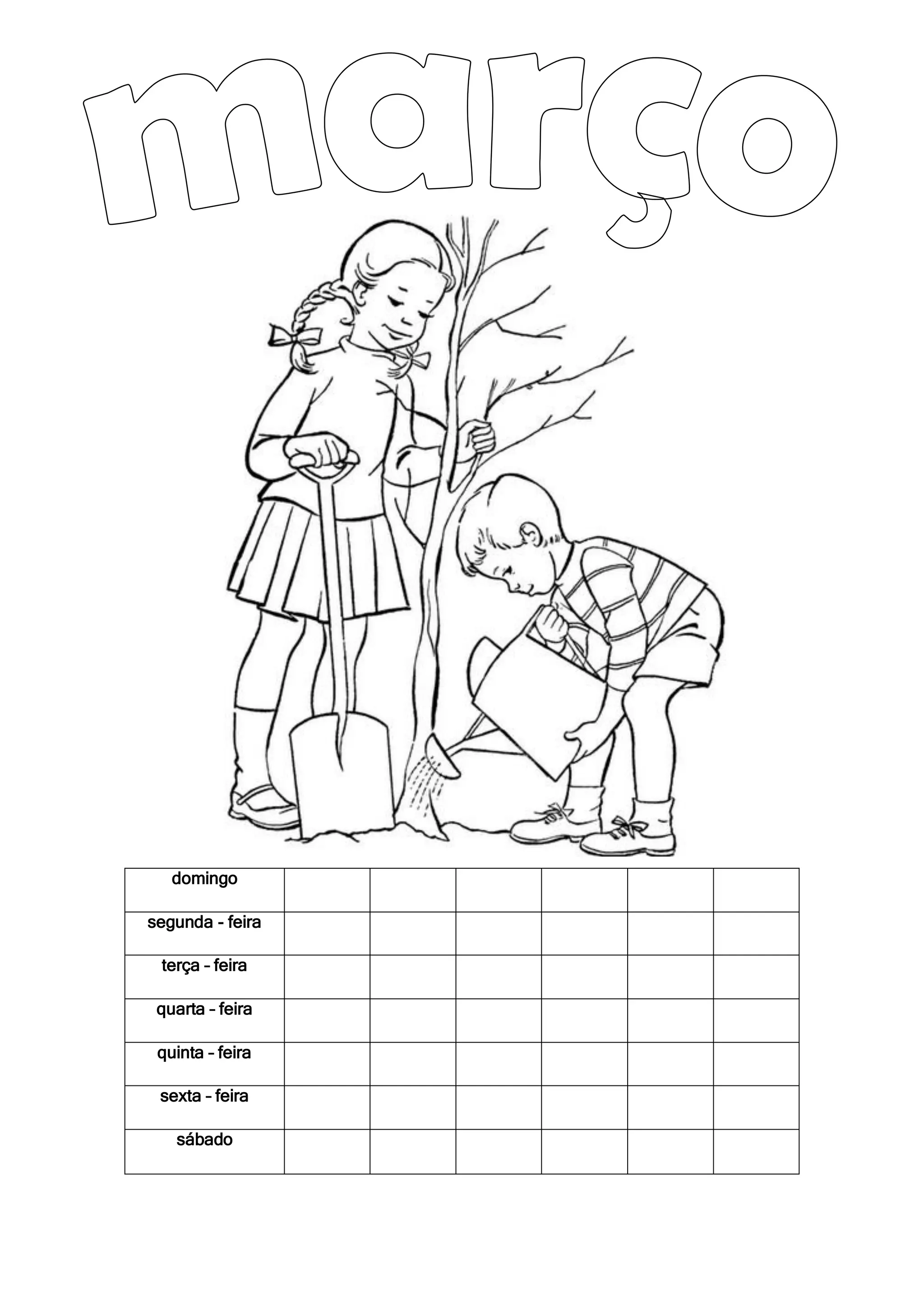 O documento lista os dias da semana repetidamente em português, começando com domingo e terminando com sábado a cada bloco.
