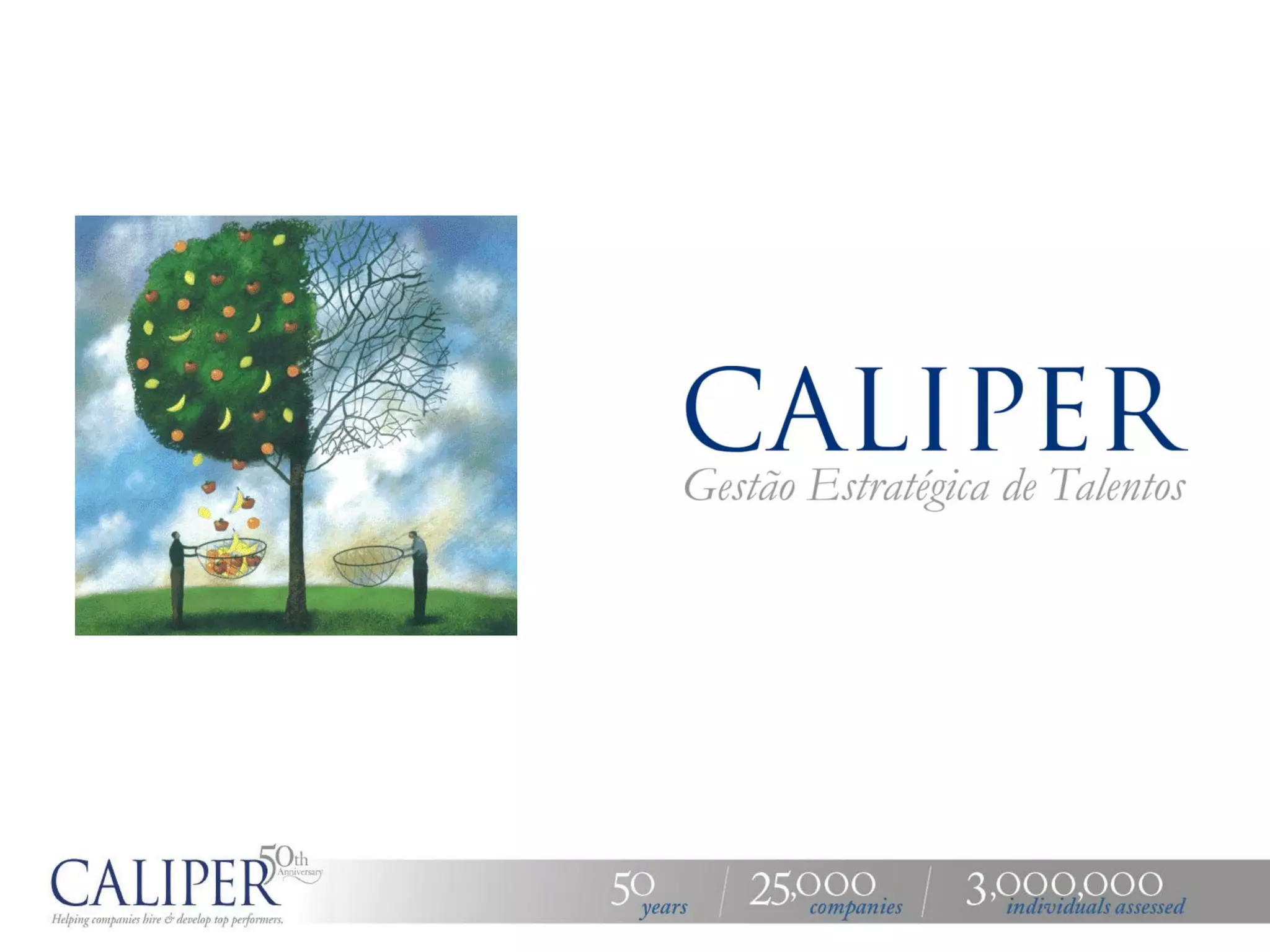A Caliper é uma empresa de consultoria em gestão de pessoas com 50 anos de experiência que oferece soluções para identificar e desenvolver talentos com o objetivo de promover o sucesso profissional e das organizações. A Caliper avaliou mais de 3 milhões de pessoas em 27.000 empresas clientes em 39 países usando ferramentas como o Perfil Caliper.