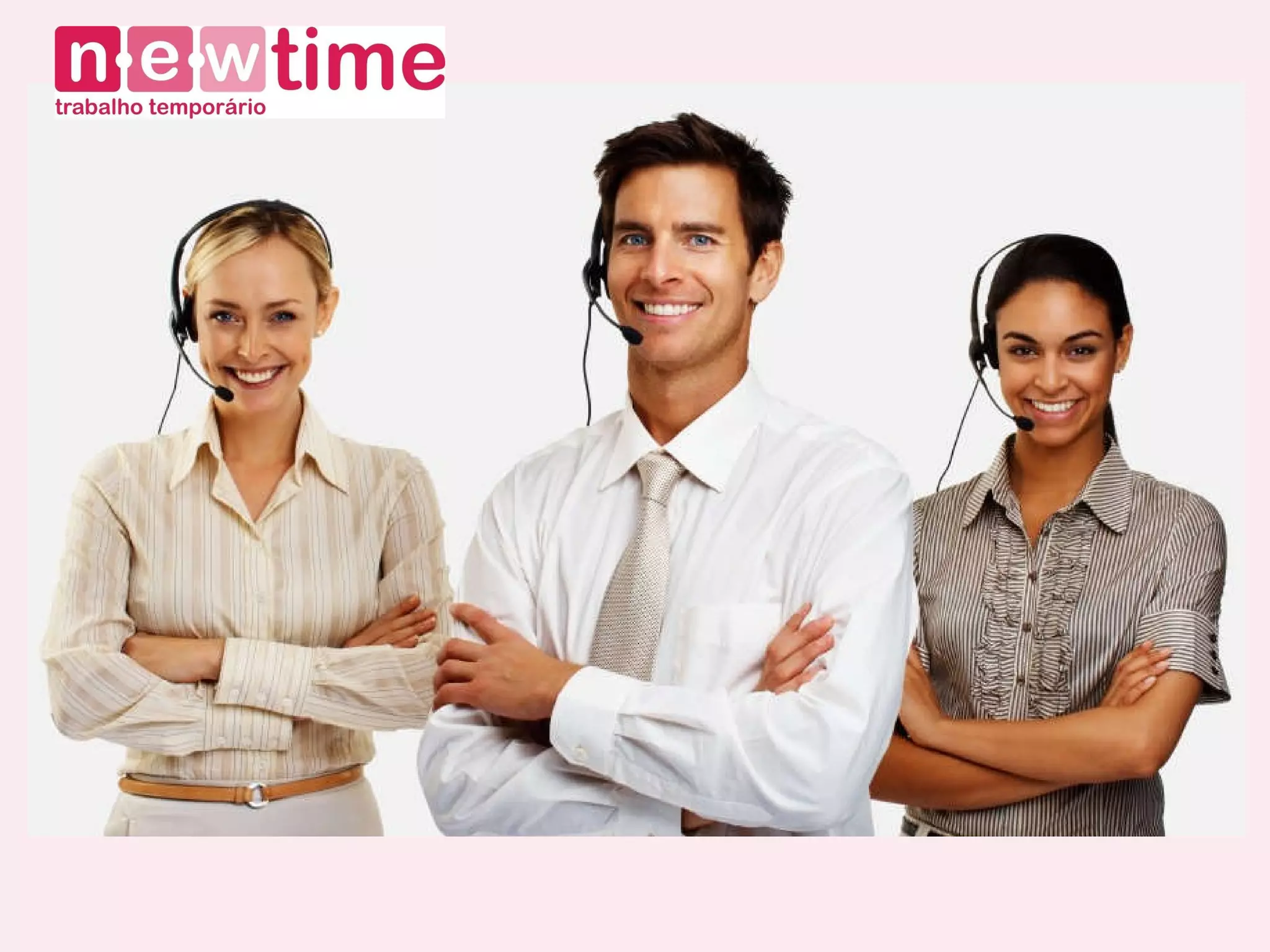 O documento fornece informações sobre a NEWTIME, uma empresa de trabalho temporário. Ele descreve os serviços da NEWTIME como recrutamento, contratação e gestão de recursos humanos para centros de atendimento. Também fornece detalhes sobre contratos de trabalho, salários, horas extras, licença médica e rescisão de contrato.
