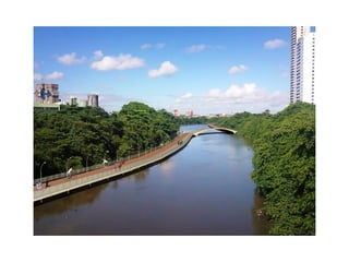 Este documento discute a importância da caminhada e da melhoria das calçadas na cidade do Recife. Apresenta argumentos sobre como andar a pé faz bem à saúde, ao meio ambiente e à sociabilidade. Critica o atual estado das calçadas recifenses e propõe diretrizes para torná-las mais acessíveis e seguras para pedestres. Defende uma mobilidade urbana centrada nas necessidades dos mais vulneráveis.