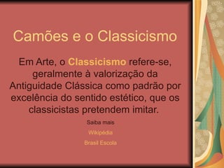 1. Camões foi um poeta português do século XVI que incorporou elementos do classicismo em sua obra, valorizando a antiguidade clássica.