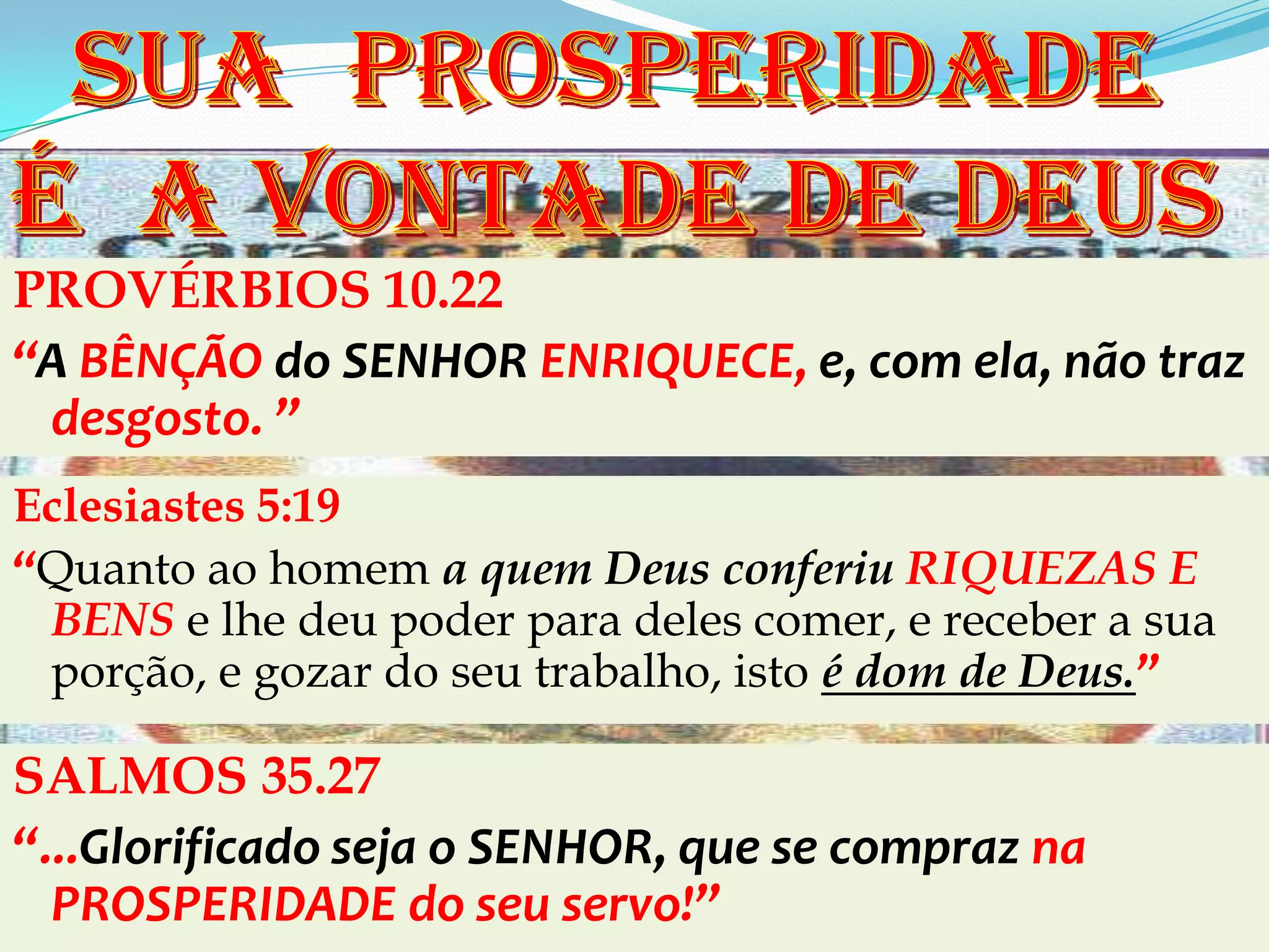 O documento discute a importância da oferta de dízimos e ofertas à igreja. Citando versículos bíblicos, argumenta que Deus abençoa a prosperidade de seus servos e que os fiéis devem trazer seus dízimos como um mandamento, com a promessa de que Deus abrirá os céus e derramará suas bênçãos.