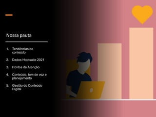 O documento discute tendências em conteúdo digital e estratégias de comunicação, enfatizando a importância de consultas integradas e gestão de crises. Destaca a necessidade de criar experiências digitais inovadoras para fortalecer o relacionamento com clientes e a valorização da diversidade nas campanhas. Também aborda a relevância do planejamento e do uso eficaz das redes sociais para otimizar o impacto das marcas.