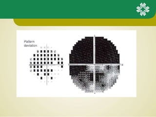 O documento discute a campimetria, definindo o campo visual como uma 'ilha de visão em um mar de escuridão', e fornece um panorama histórico desde Hipócrates até a evolução de técnicas de mensuração. São abordados tipos de perimetria, definições relevantes como limiar e escotoma, além de características e padrões glaucomatosos que auxiliam na interpretação dos resultados. O texto conclui com referências a estudos e publicações importantes na área de oftalmologia.