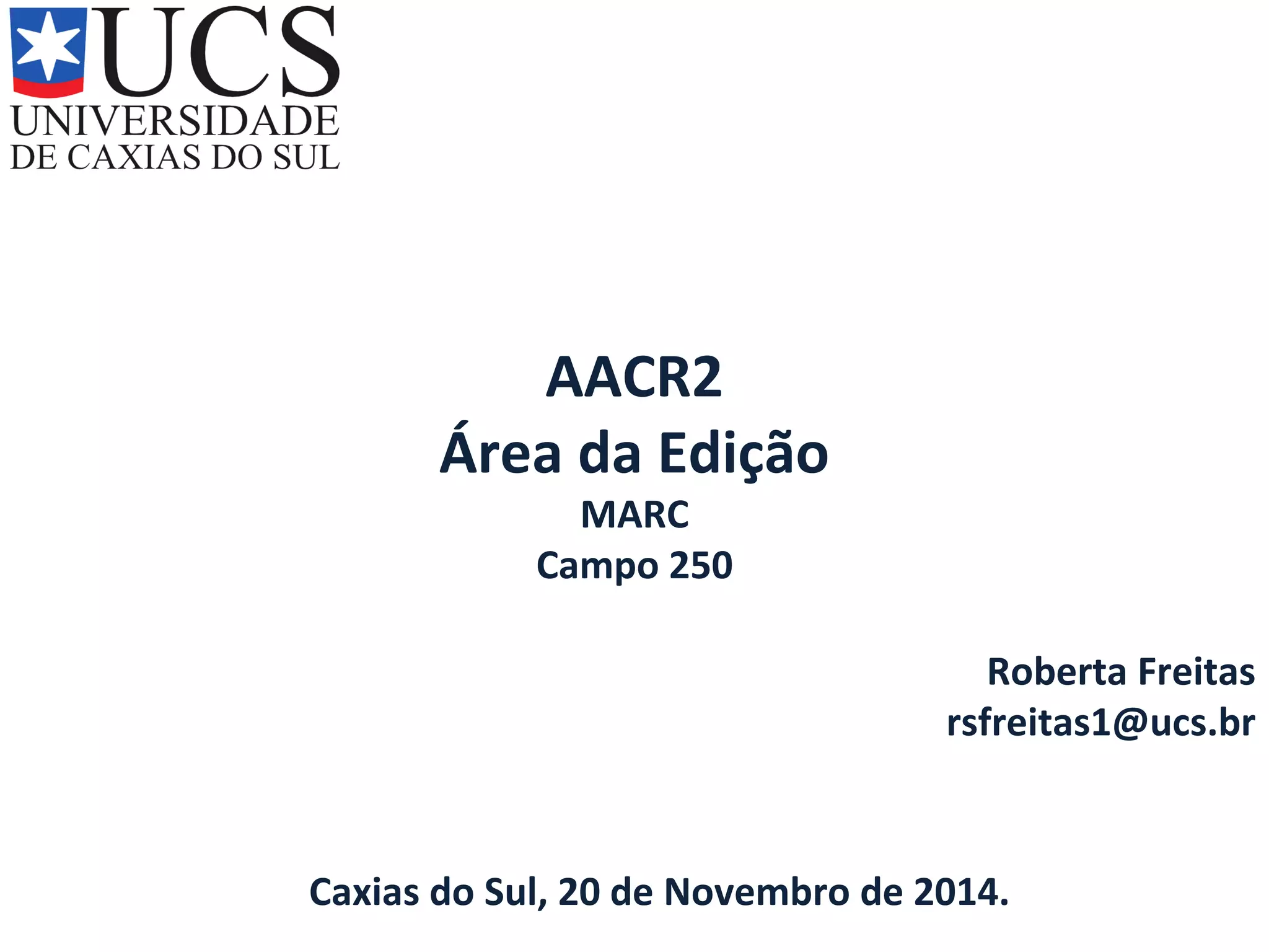 O documento discute as regras do AACR2 e MARC para indicação de edição em catalogação, descrevendo: 1) Como transcrever a edição conforme aparece na fonte ou traduzi-la; 2) Exemplos de preenchimento dos campos 90 e 250; 3) Mudanças a serem adotadas na equipe de catalogação da BICE.