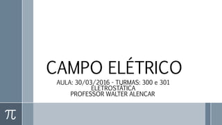 O documento aborda o conceito de campo elétrico, explicando sua definição, a relação com cargas elétricas e a força de interação entre elas. Também discute as características e orientações do vetor campo elétrico, além de apresentar questões e resoluções relacionadas ao tema. Por fim, são abordados os conceitos de campos uniformes e não-uniformes e a influência da geometria dos condutores eletrizados.