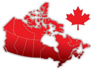 O documento descreve a história e formação do Canadá como uma confederação de províncias britânicas na América do Norte em 1867. Também discute a geografia do Canadá, sua economia como a 10a maior do mundo, e aspectos culturais como a música, dança e culinária do país.