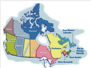O Canadá é o segundo maior país do mundo, com 10 províncias e 3 territórios. A capital é Ottawa e as línguas oficiais são o inglês e o francês. A economia é baseada nos setores primário, com mineração, e secundário, com indústrias de bens de consumo.