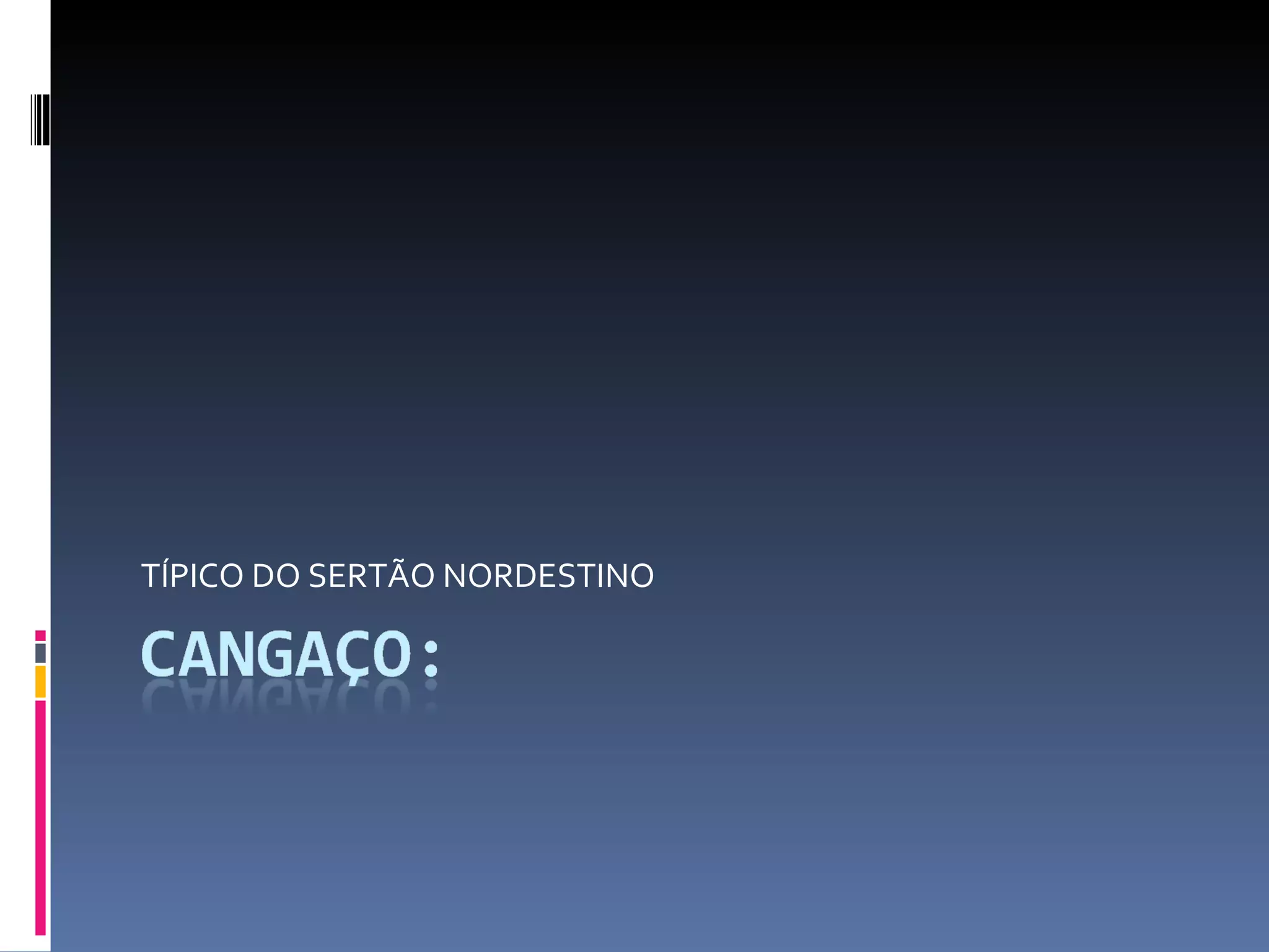 ![1- CAUSAS GERAIS: > NECESSIDADE ECONÔMICA(SOBREVIVÊNCIA) > DESEJO DE VINGANÇA- CULTURA DA VIOLÊNCIA > ATRAÇÃO PELA AVENTURA – STATUS > DIVERGÊNCIA HISTÓRICA: BANDITISMO # BANDITISMO SOCIAL(FORMA DE REVOLTA SOCIAL [“ROBIN HOOD”]).](https://image.slidesharecdn.com/cangao-100930073600-phpapp01/85/Cangaco-3-320.jpg)