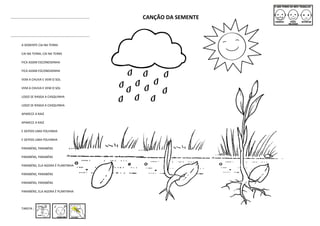 A semente cai na terra e fica escondida, até que a chuva e o sol fazem com que ela se desenvolva, rasgando a casquinha. Isso permite que a raiz e as folhinhas apareçam, transformando a semente em uma plantinha.