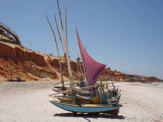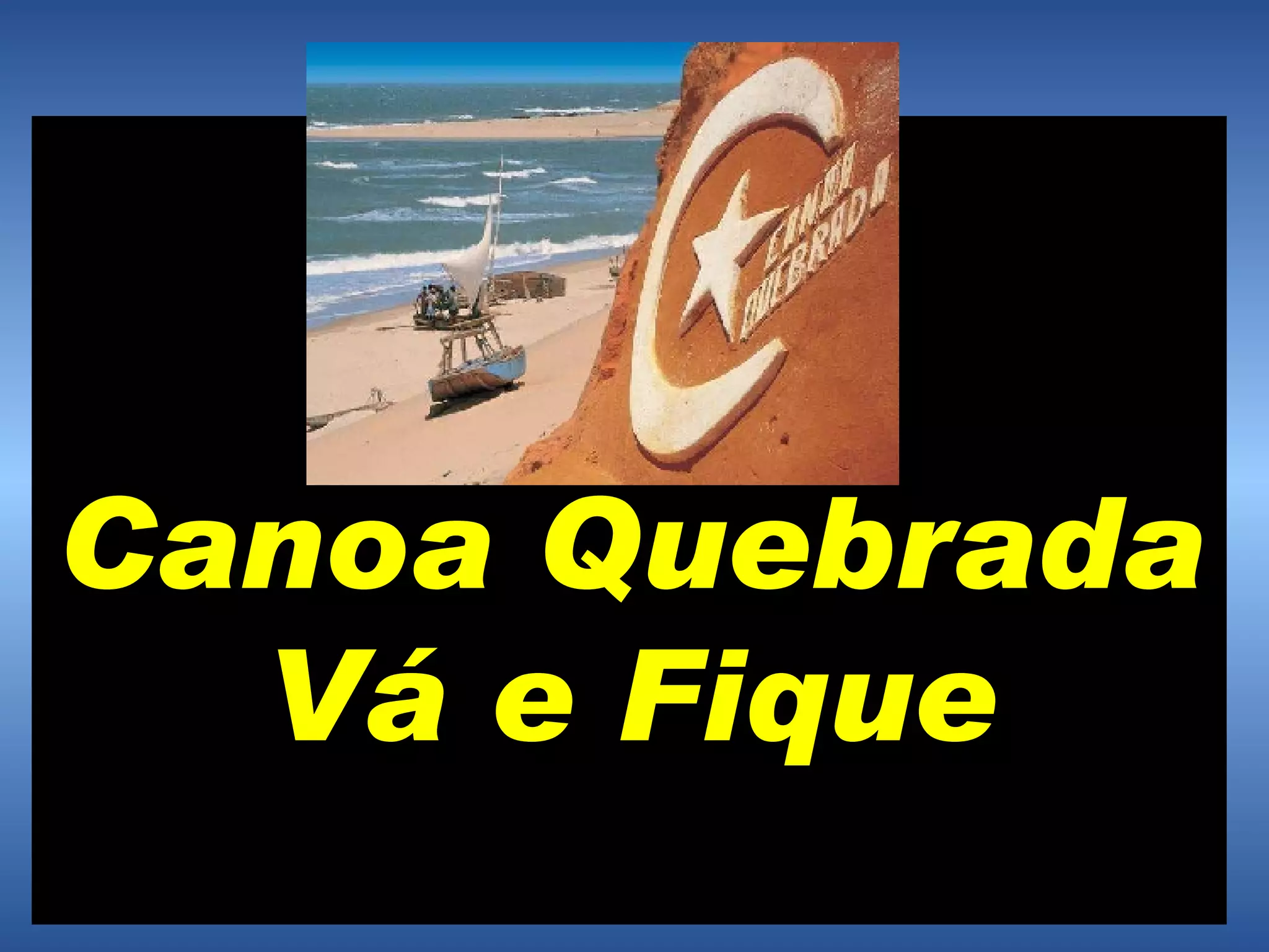 O texto descreve a praia de Canoa Quebrada no Ceará, destacando que é preciso passar algum tempo na praia para realmente conhecê-la, onde o dia continua no começo da noite e a noite continua no começo do dia, sem a noção de horário ou calendário. A praia tem o mar e a lua como símbolos e oferece belezas diferentes a cada maré, seja com piscinas naturais na maré baixa ou ondas durante a maré alta.