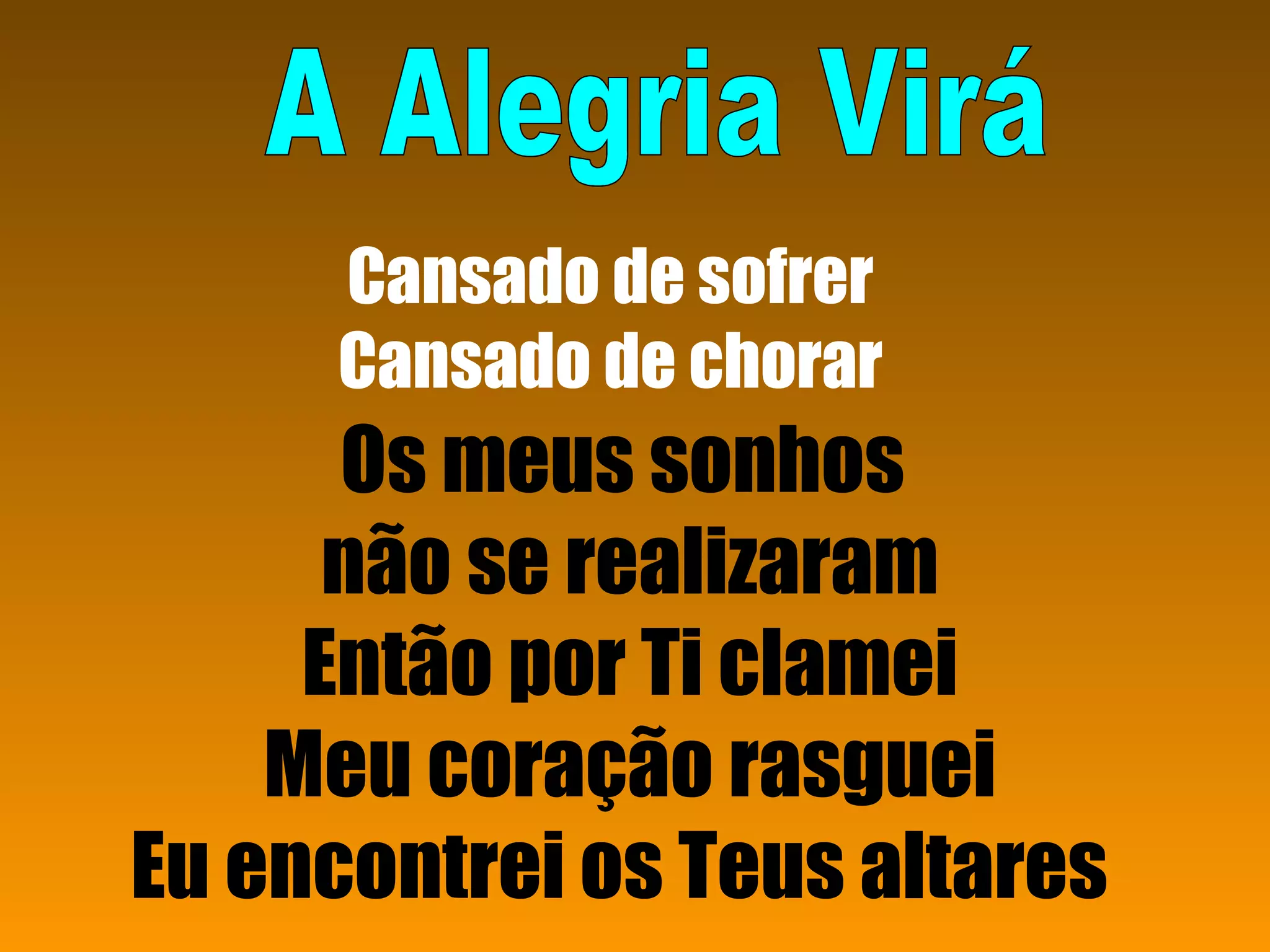 O documento descreve a jornada de alguém que está cansado de sofrer e chorar, pois seus sonhos não se realizaram. Ele clama a Deus e encontra conforto nos altares, sabendo que embora o choro dure uma noite, a alegria virá pela manhã. Ele faz parte das promessas de Deus e viverá Seus sonhos.