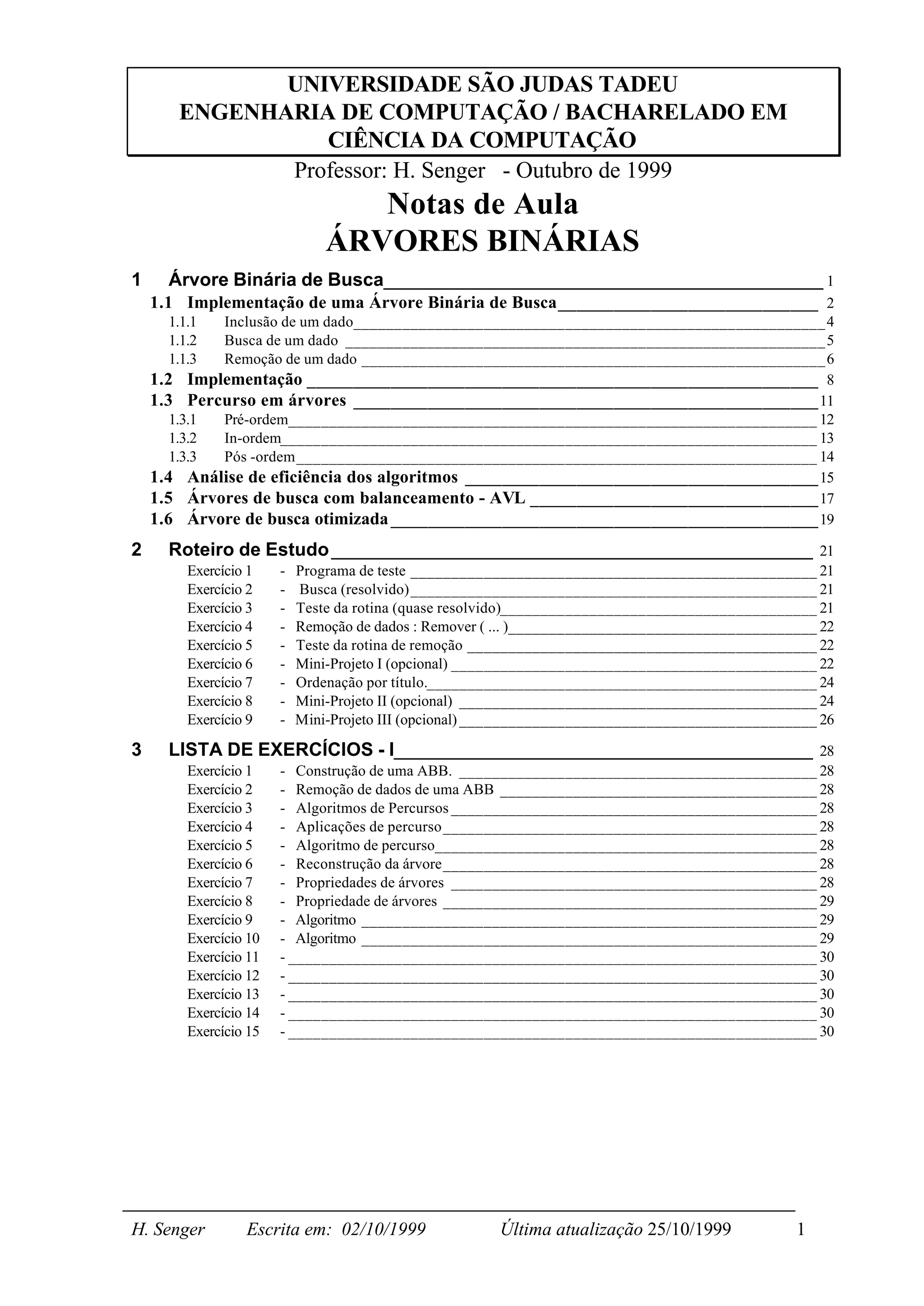 1 Árvore Binária de Busca__________________________________________ 1