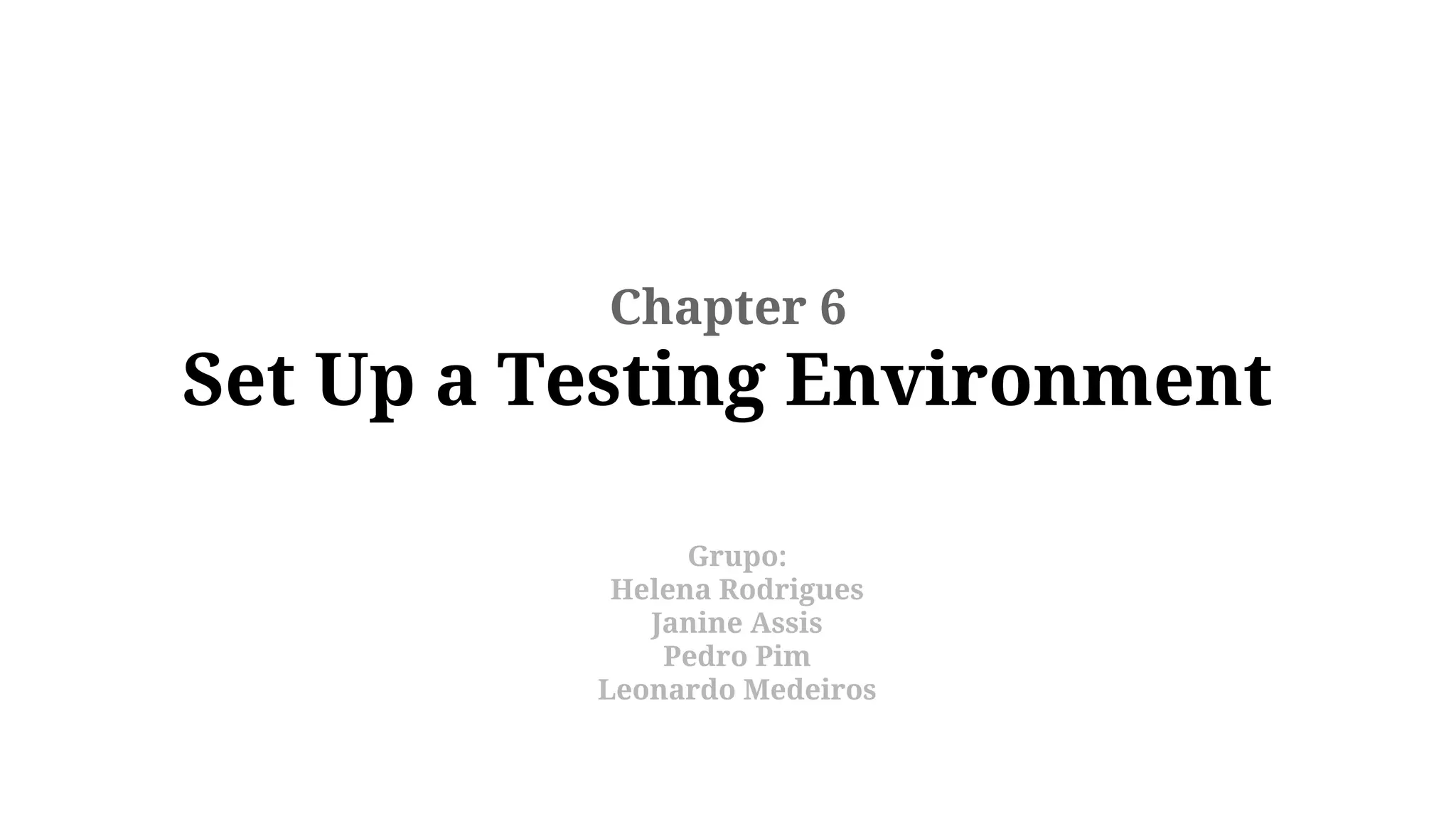 O documento aborda como configurar um ambiente de testes de usabilidade, destacando a importância de educar a equipe sobre métodos e envolver diferentes interessados. Sugere começar pequeno e planejar a evolução da metodologia, considerando o local e o perfil dos usuários. Também discute a criação de laboratórios de testes, desde portáteis até permanentes, e a definição de papéis na equipe de teste.