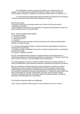 A sequência correta dos eventos na secreção de hormônios é: 1) Síntese de proteínas nos ribossomos, 2) Transporte para o aparelho de Golgi, 3) Secreção para o sangue. Os hormônios produzidos pelas células das ilhotas de Langerhans, responsáveis pelo controle da glicose no sangue, são o glucagon e a insulina.