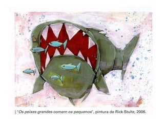 Este documento resume um sermão do Padre António Vieira em 1654. Ele critica os peixes por se comerem uns aos outros, com os grandes comendo os pequenos, e por sua ignorância e cegueira. Ele também critica os homens por se comportarem da mesma maneira, se comendo uns aos outros através de várias formas de exploração, e por sua própria ignorância e cegueira.