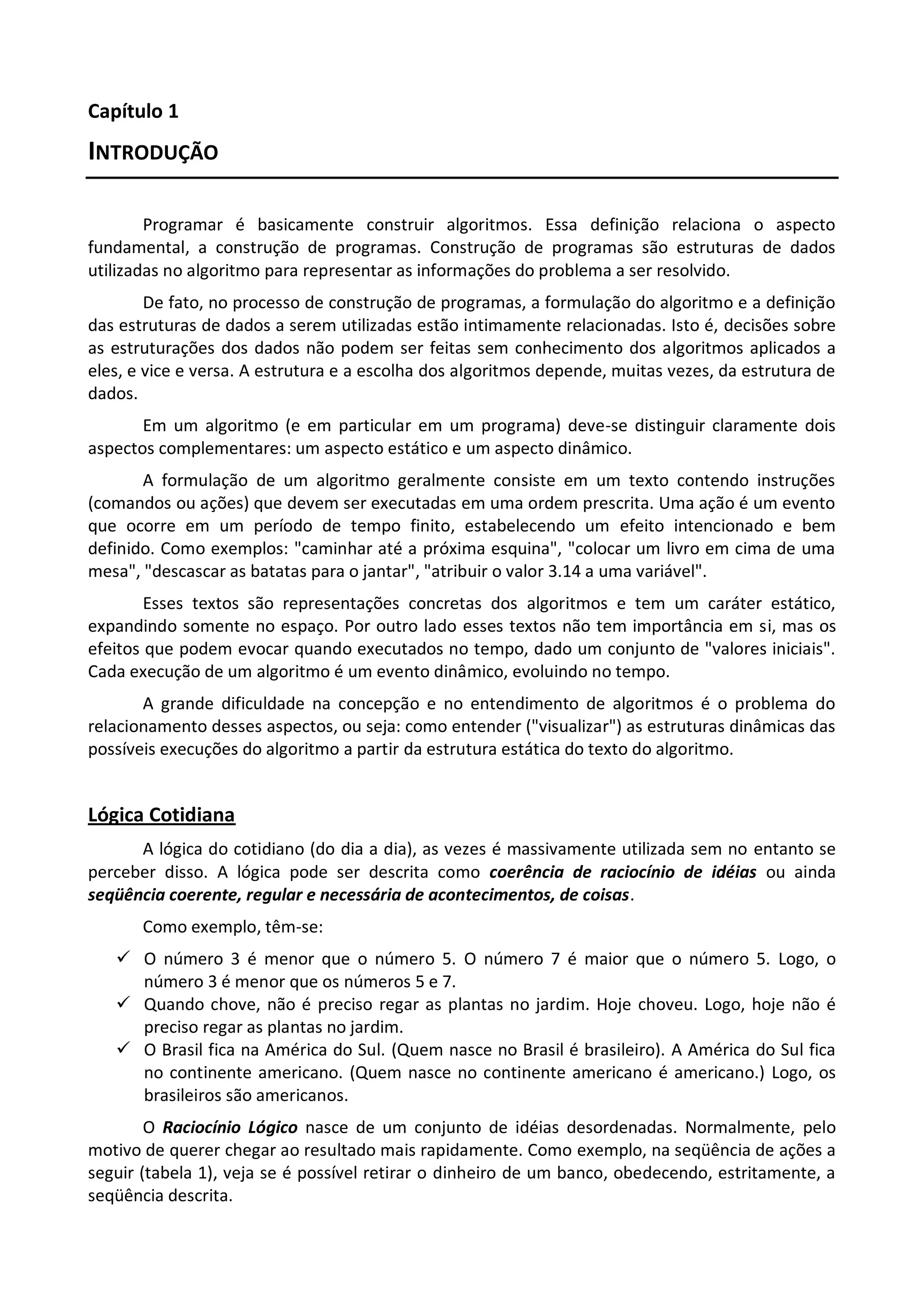 1) O documento introduz os conceitos de algoritmos e estruturas de dados, explicando que a construção de programas envolve ambos;