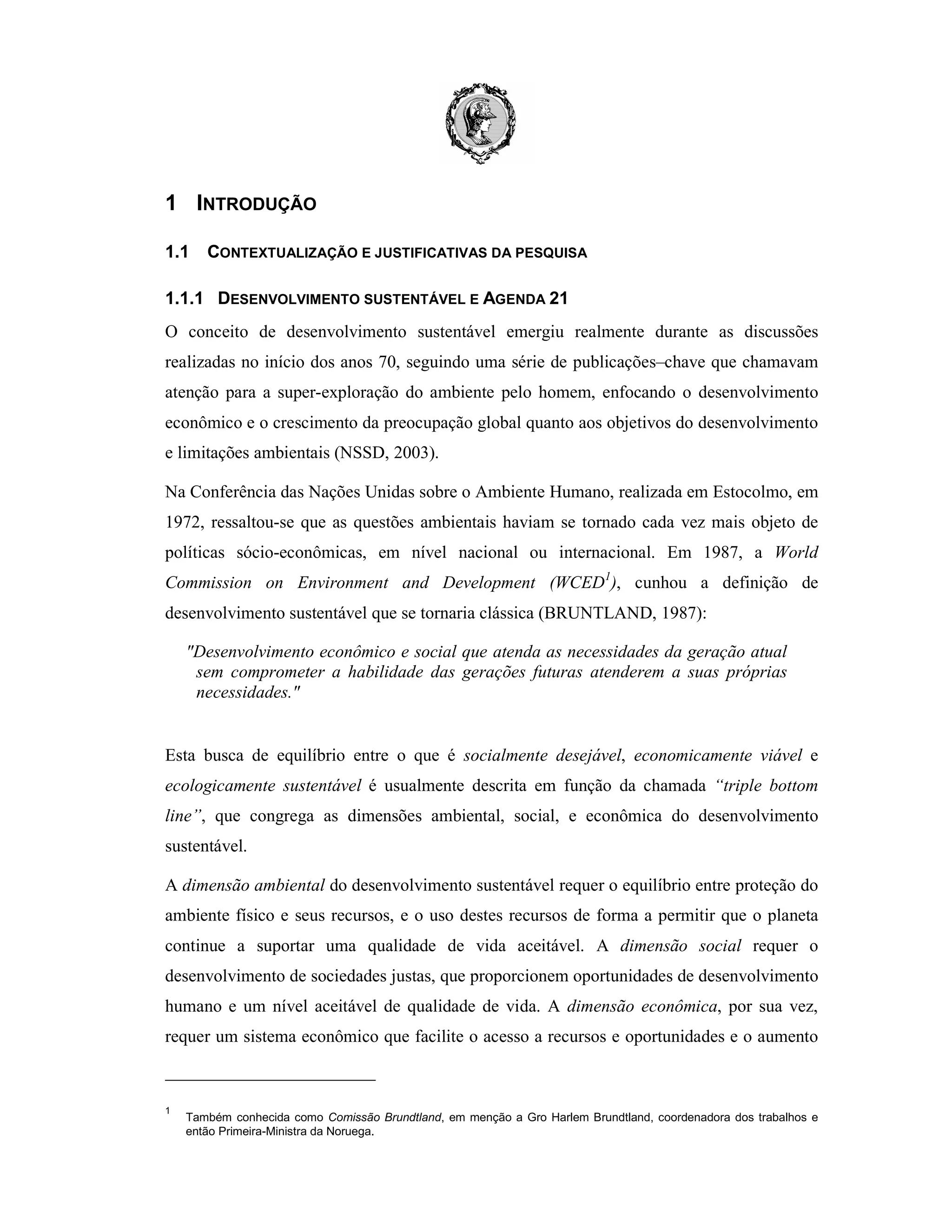 Este documento discute a importância da construção sustentável e da avaliação ambiental de edifícios no contexto do desenvolvimento sustentável. Apresenta o histórico do conceito de desenvolvimento sustentável e como ele influenciou a agenda da ONU e do setor de construção civil. Argumenta que a avaliação ambiental de edifícios pode promover benefícios econômicos e ambientais, ao mesmo tempo em que ajuda a definir o que significa ser um edifício "ambientalmente responsável".