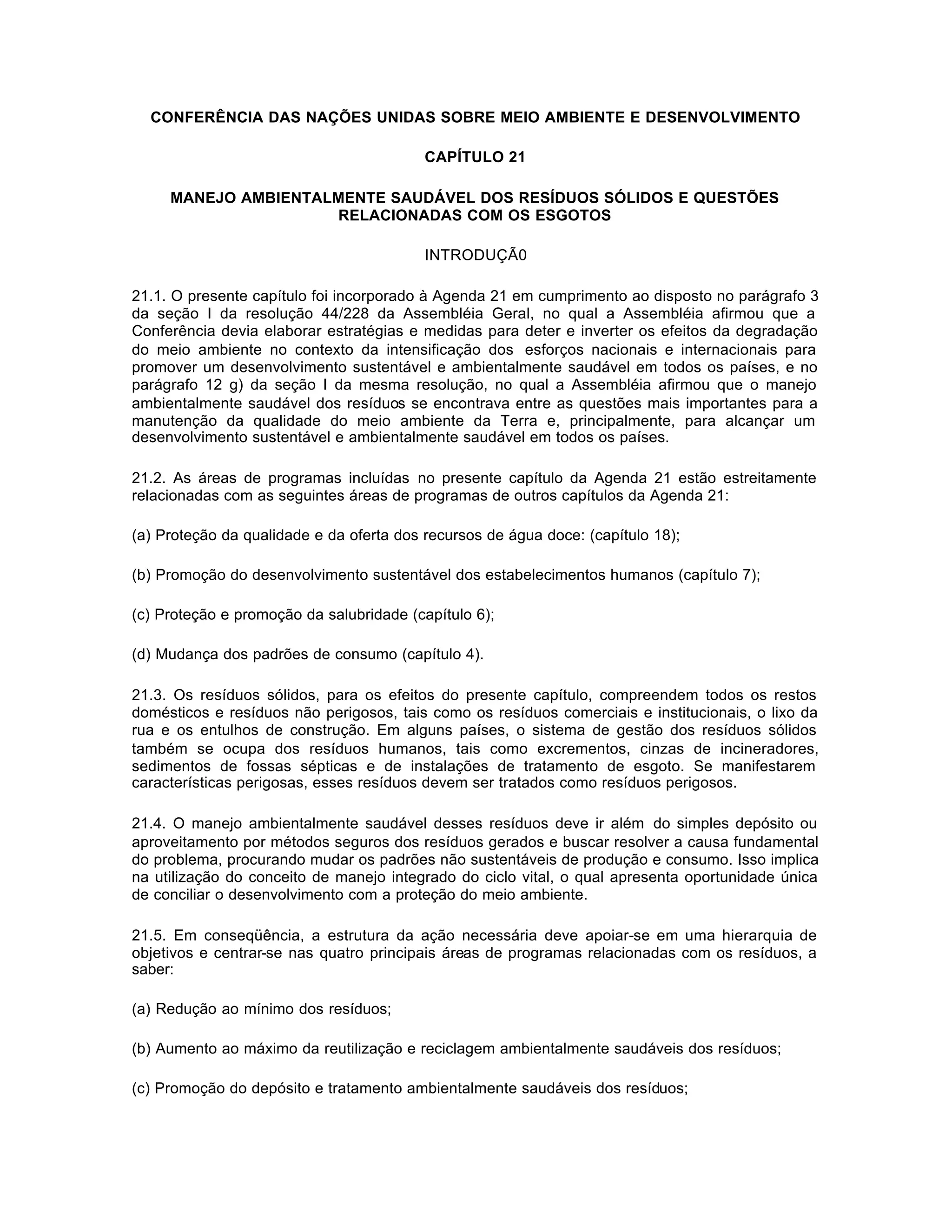 Este documento discute estratégias para o manejo ambientalmente saudável de resíduos sólidos e esgotos. Ele descreve quatro áreas principais de programas: 1) redução ao mínimo de resíduos; 2) aumento da reutilização e reciclagem de resíduos; 3) promoção do depósito e tratamento ambientalmente saudáveis; e 4) ampliação do alcance dos serviços de resíduos. Dentro de cada área, objetivos, atividades e meios de implementação são detalhados para melhor